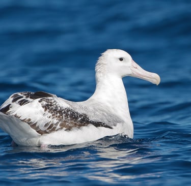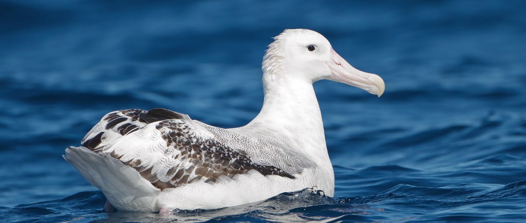 El albatros errante es un ave marina de gran envergadura, con una envergadura alar que puede superar los 3 metros. Su plumaje es predominantemente blanco, con manchas oscuras en las alas. Estas aves son famosas por su capacidad para planear durante horas sin aletear, aprovechando las corrientes de aire. Se alimentan principalmente de peces y calamares. Los albatros errantes son aves longevas y monógamas, formando parejas para toda la vida.