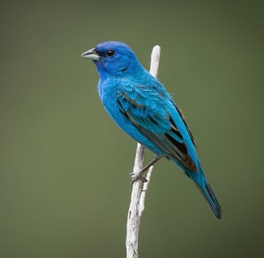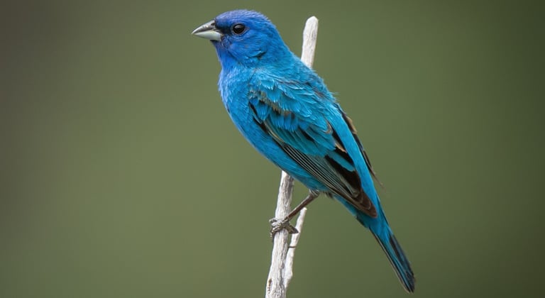 El azulejo índigo (Passerina cyanea) es un ave pequeña y vibrante originaria de América del Norte, famosa por el intenso color azul de los machos durante la temporada de apareamiento. Las hembras, en contraste, presentan un plumaje marrón apagado que les permite camuflarse mientras anidan. Habita en bosques abiertos, matorrales y bordes de caminos, alimentándose de semillas, insectos y bayas. Es conocido por su canto melodioso, que los machos utilizan para delimitar territorio y atraer pareja. Durante el invierno, migra hacia América Central y el Caribe, siendo un ejemplo fascinante de adaptación y belleza natural.