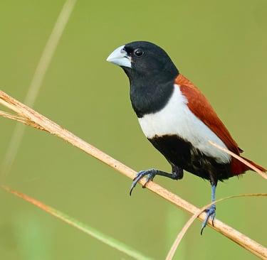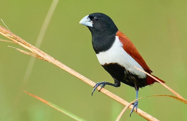 El capuchino tricolor es un pequeño pájaro de origen asiático, pero que se ha introducido en diversas partes del mundo, incluyendo América. Se caracteriza por su colorido plumaje, con tonos rojizos, blancos y negros. Es un ave sociable que suele formar bandadas y se alimenta principalmente de semillas. Aunque es una especie adaptable, su introducción en nuevos ecosistemas puede causar desequilibrios ecológicos al competir con especies nativas por recursos.