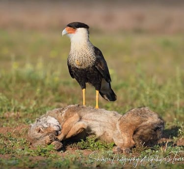 El Caracara Norteño es un ave rapaz de tamaño mediano, conocida por su plumaje distintivo y su cabeza crestada. Habita en zonas abiertas como pastizales, sabanas y áreas costeras. Se alimenta de una variedad de presas, incluyendo roedores, reptiles, aves pequeñas y carroña. Es un ave inteligente y adaptable, capaz de utilizar herramientas para obtener alimento. Su comportamiento es a menudo descrito como curioso y audaz.
