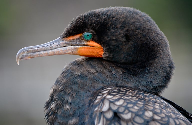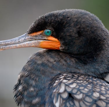 El cormorán orejudo (Phalacrocorax auritus) es un ave acuática de cuerpo esbelto y plumaje negro, común en América del Norte y Central. Durante la temporada de reproducción, presenta mechones blancos distintivos cerca de las orejas, que le dan su nombre. Habita en lagos, ríos, costas y estuarios, donde se sumerge hábilmente para capturar peces, su principal alimento. Es conocido por posarse con las alas extendidas para secarlas, ya que carece de aceites impermeabilizantes como otras aves acuáticas. Aunque ha enfrentado controversias por su impacto en la pesca, es un componente clave de los ecosistemas acuáticos.