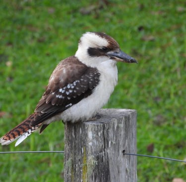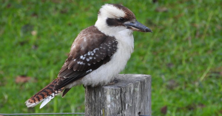 El kookaburra común (Dacelo novaeguineae) es un ave icónica de Australia, conocida por su distintivo canto que suena como una carcajada, añadiendo un toque único al paisaje sonoro del bosque. Con un plumaje en tonos marrones, blancos y un sutil azul en las alas, combina belleza con adaptabilidad. Es carnívoro y se alimenta de insectos, reptiles pequeños e incluso peces. Este pájaro social vive en grupos familiares y simboliza la conexión con la naturaleza en muchas culturas. El kookaburra común es un emblema de la rica fauna australiana y su singularidad.