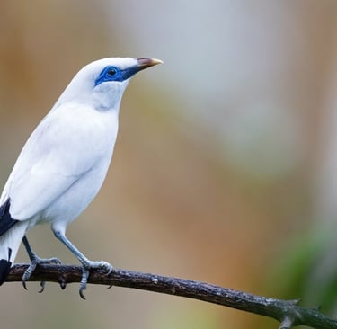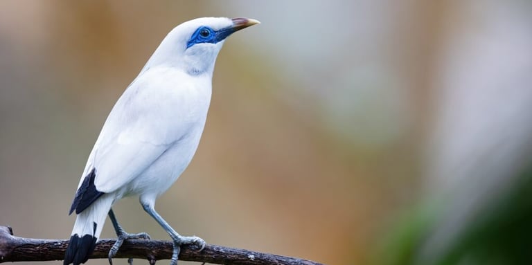 El estornino de Bali (Leucopsar rothschildi) es una elegante ave endémica de la isla de Bali, Indonesia, conocida por su plumaje blanco puro, cresta llamativa y distintivas manchas azules alrededor de los ojos. Su hábitat natural son los bosques secos y manglares, aunque se encuentra en peligro crítico debido a la pérdida de hábitat y la captura para el comercio ilegal. Se alimenta de frutas, semillas e insectos, siendo una especie clave en su ecosistema. Los esfuerzos de conservación incluyen programas de cría en cautiverio y reintroducción. Es considerado un símbolo nacional en Indonesia por su belleza y rareza.
