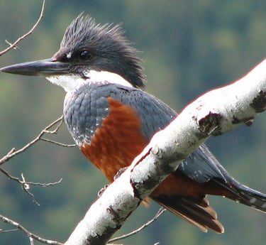 El Martín Pescador es un ave acuática de colores vibrantes y pico largo y puntiagudo. Habita cerca de ríos, lagos y estanques, donde se sumerge para pescar con gran precisión. Su plumaje, que combina azules brillantes, verdes y naranjas, le permite camuflarse en su entorno. Es un ave solitaria y territorial, que defiende su zona de pesca con agresividad. Su vuelo es rápido y directo, y su canto es un sonido agudo y repetitivo.