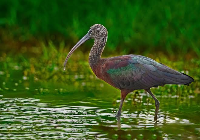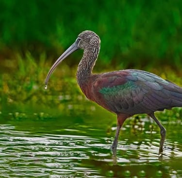 El Morito Común es un ave zancuda de plumaje oscuro con reflejos irisados, especialmente en su cuello y cabeza. Su pico es largo y curvado, ideal para capturar pequeños animales en el barro. Habita en humedales, marismas y zonas pantanosas, donde se alimenta de insectos, crustáceos y pequeños vertebrados. Suele formar grandes colonias de cría, compartiendo hábitat con otras aves acuáticas.