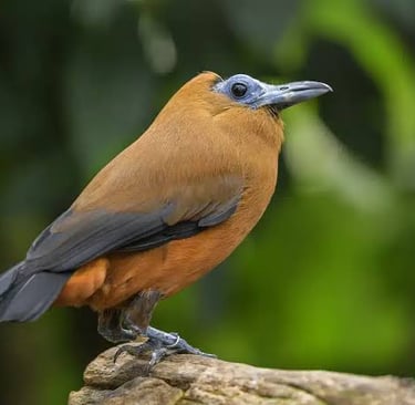 El pájaro capuchino es una especie de ave paseriforme conocida por su llamativo plumaje naranja y su cabeza pequeña y desproporcionada. Habita en los bosques tropicales de América del Sur y se alimenta principalmente de frutas. Los machos de esta especie realizan elaborados despliegues de cortejo, produciendo sonidos extraños y únicos que recuerdan a una motosierra o una vaca. Su apariencia exótica y sus comportamientos peculiares lo convierten en una especie muy interesante para los observadores de aves.