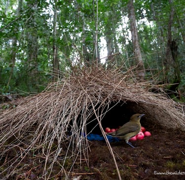 El pájaro pergolero es una especie de ave fascinante, conocida por sus elaborados rituales de cortejo. Los machos construyen complejas estructuras, llamadas pérgolas, que decoran con objetos brillantes y coloridos para atraer a las hembras. Cada especie de pergolero tiene su propio estilo de pérgola, lo que demuestra una increíble creatividad e ingenio. Además de su habilidad para construir, los pergoleros son excelentes imitadores y pueden reproducir una gran variedad de sonidos.