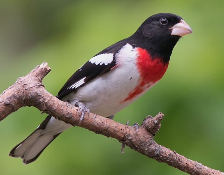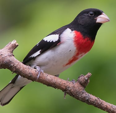 El picogrueso pechirrosado (Pheucticus ludovicianus) es un ave migratoria de la familia Cardinalidae, reconocida por su robusto pico y colores distintivos. Los machos tienen un pecho rosado brillante, con un cuerpo negro y blanco, mientras que las hembras presentan un plumaje más discreto, con tonos marrones y rayados. Se reproduce en los bosques y matorrales de América del Norte y migra hacia América Central y del Sur durante el invierno. Su dieta incluye semillas, frutas e insectos, aprovechando su fuerte pico para romper cáscaras duras. Aunque es una especie de amplia distribución, enfrenta amenazas por la pérdida de hábitat.