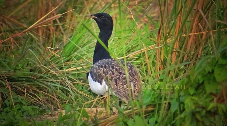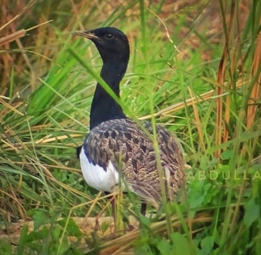 El sinson de bengala es un ave terrestre de gran tamaño, conocida por sus elaboradas exhibiciones de cortejo. Habita en pastizales y campos de cultivo, donde se alimenta de una variedad de insectos y pequeños vertebrados. Desafortunadamente, la pérdida de su hábitat y la caza lo han llevado a estar en peligro de extinción. Es una especie fascinante, pero su supervivencia está seriamente amenazada.
