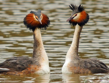 El somormujo lavanco (Podiceps cristatus) es un ave acuática elegante y llamativa, ampliamente distribuida en lagos y humedales de Europa, Asia, África y Oceanía. Su plumaje distintivo incluye un diseño blanco y negro en el cuerpo, acompañado de un collar de plumas rojizas y negras durante la época de apareamiento. Conocido por sus elaborados rituales de cortejo, que incluyen movimientos sincronizados y ofrecimiento de algas, es un símbolo de conexión y belleza natural. Se alimenta principalmente de peces pequeños, insectos acuáticos y crustáceos, sumergiéndose hábilmente para cazarlos. El somormujo lavanco es un indicador de ecosistemas acuáticos saludables y un deleite para los observadores de aves.